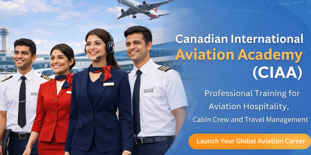 Canadian International Aviation Academy (CIAA) offers comprehensive training in aviation hospitality, air hostess/cabin crew, tour, and travel management, blending Canadian standards with practical skills for global careers. These programs equip Indian students with industry-ready expertise in safety, customer service, and operations.